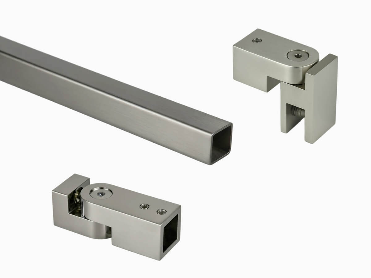 – Winkel: Edelstahl massiv, passend zum ausgewählten Glasbeschlag