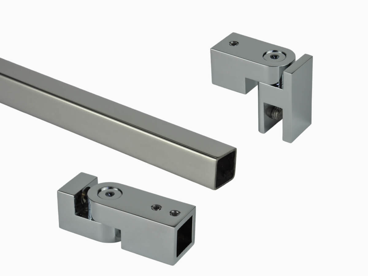 – Winkel: Edelstahl massiv, passend zum ausgewählten Glasbeschlag