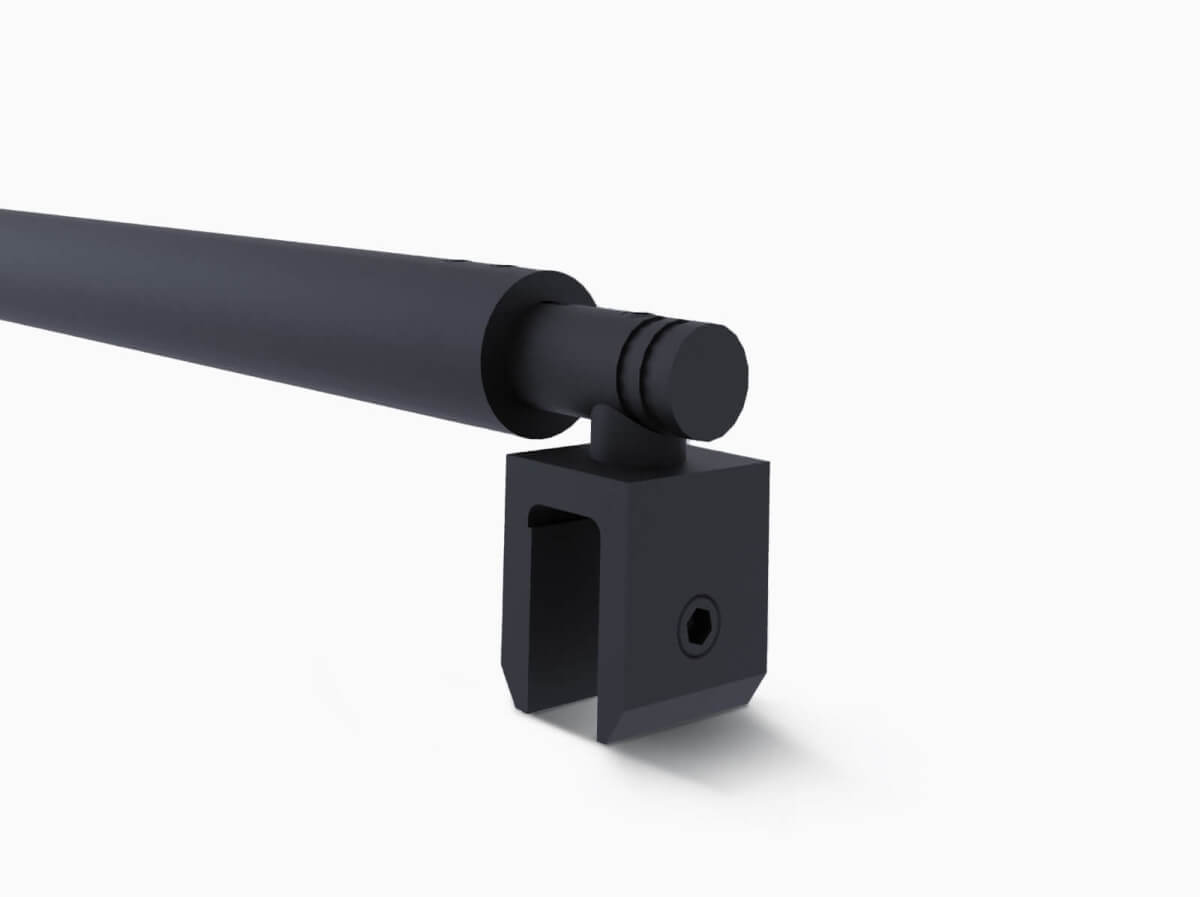 Winkel (Edelstahl massiv): Das Glas wird am ausgewählten Winkel, passend zu Ihrem Beschlag, festgeschraubt.